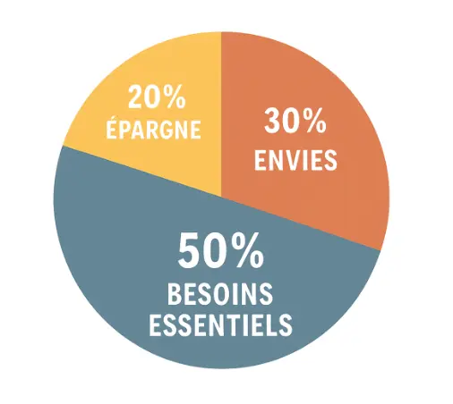 - 20 % — Avenir : ce qui vous paie plus tard (épargne et/ou remboursement de dettes coûteuses).